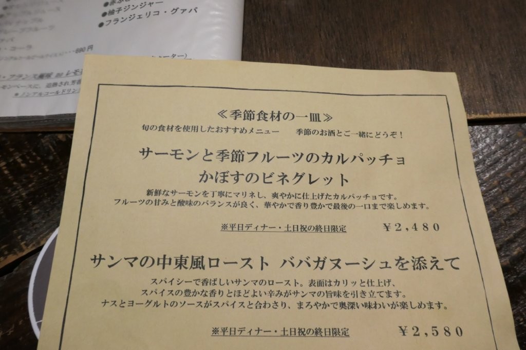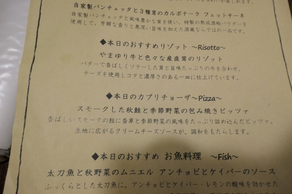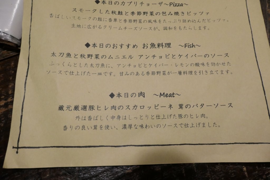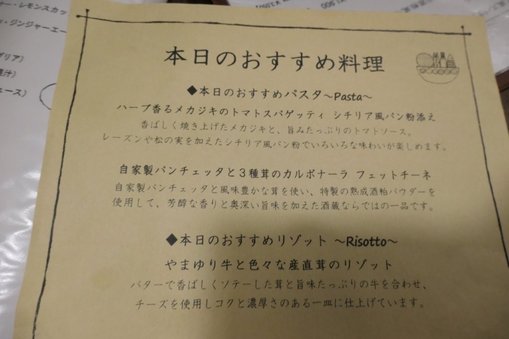 本日のおすすめ料理の方にも・・・こう何かグッと来るのが無くて・・・