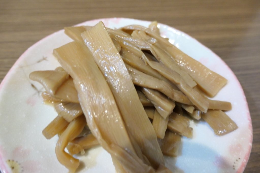 ノーマルだと具材は水菜・メンマ・チャーシューのトリオ構成!