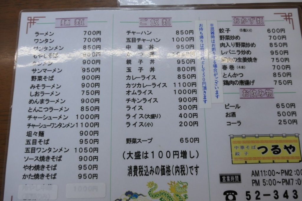 五目チャーハン・オムライス・やわ焼きそば・みそラーメン・と少なくなってきました。