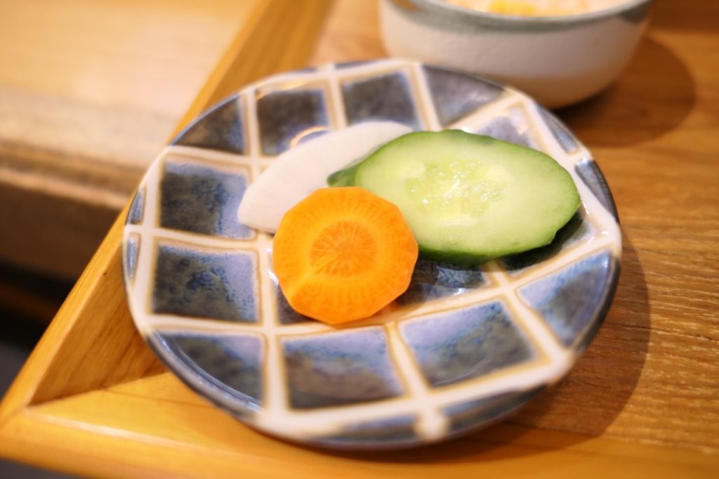 漬物は 大根・キュウリ・ニンジンの糠漬けが1切れづつ