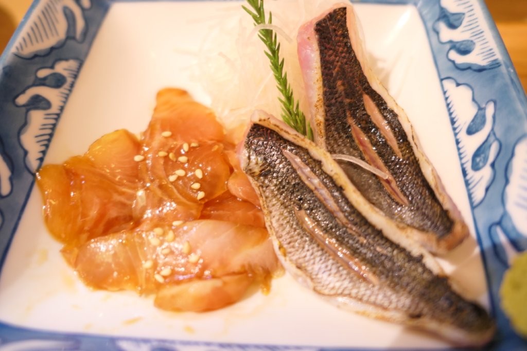 地魚2種は タカノハ鯛の漬けと 高部の炙り で