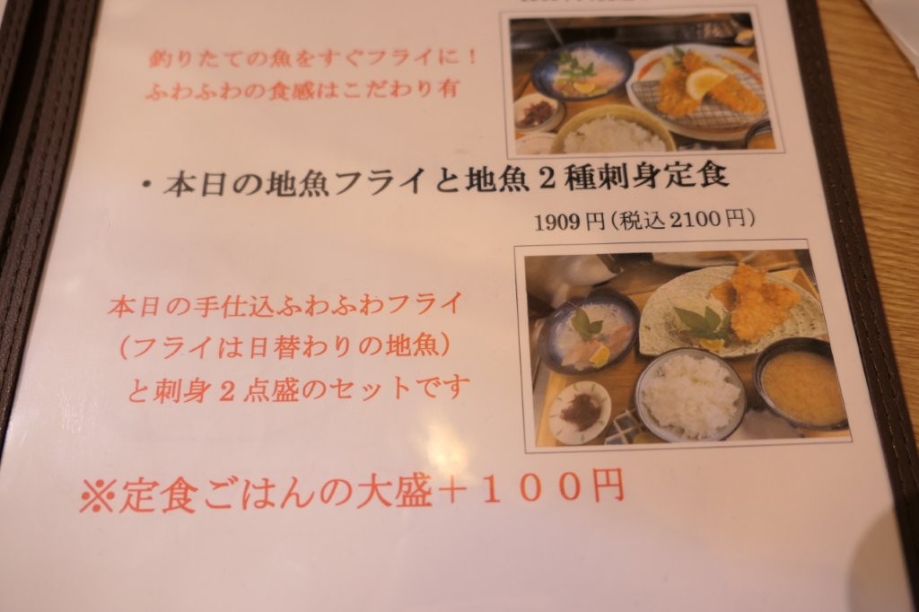 すぐに 「アジフライと地魚2種刺身定食」に変更してもらいました