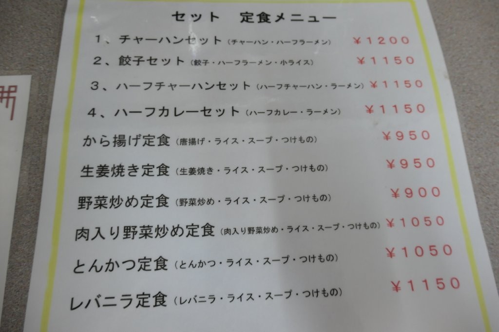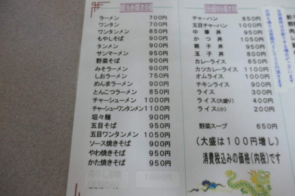ラーメン¥700 チャーハン¥850は