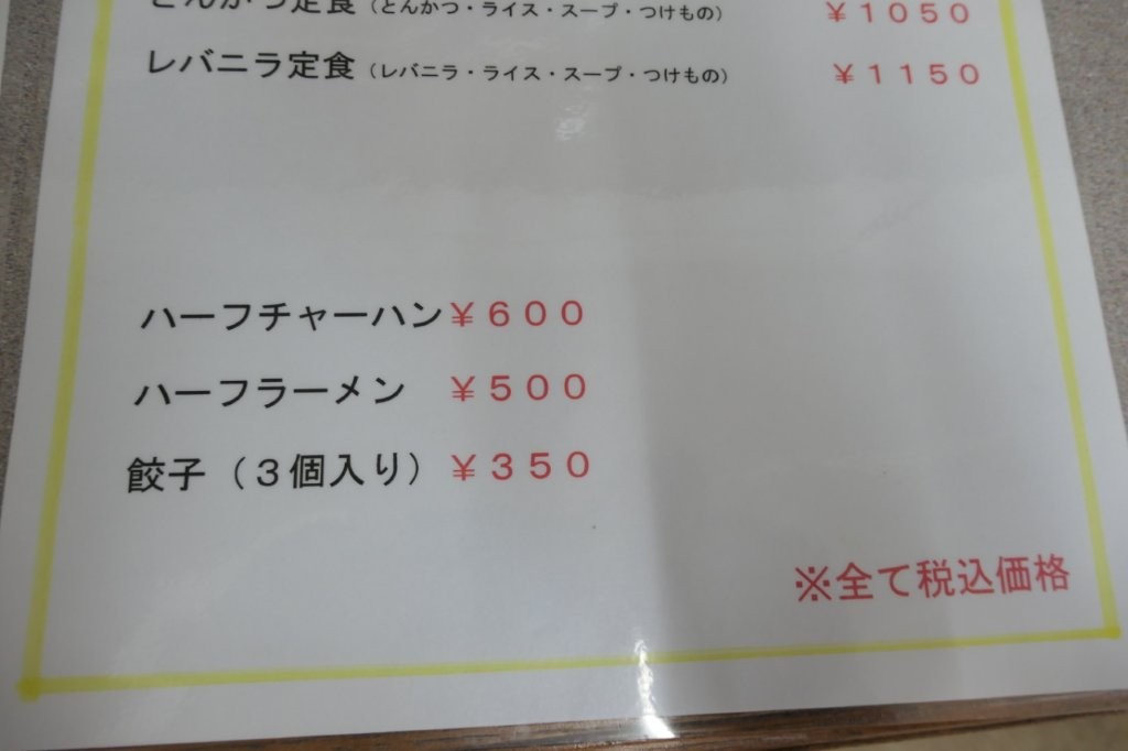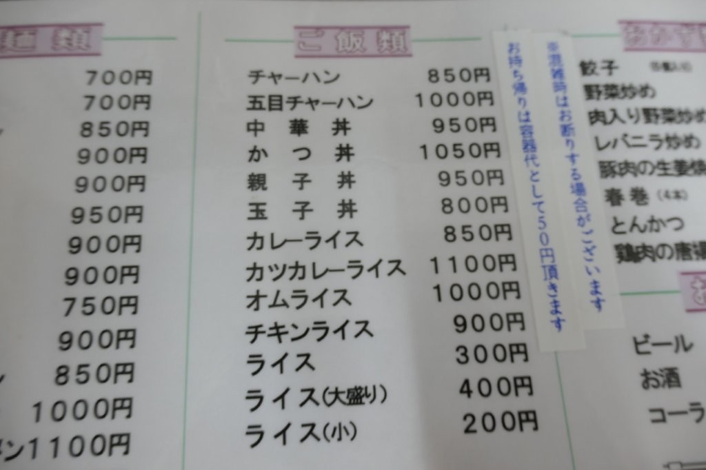 ラーメン¥700 チャーハン¥850は