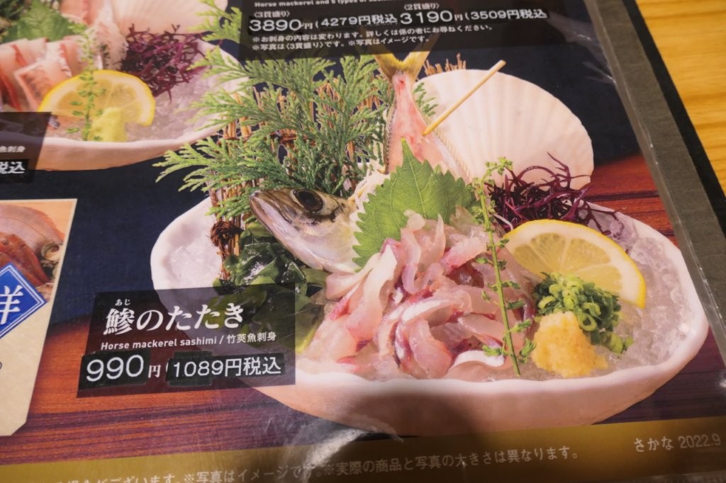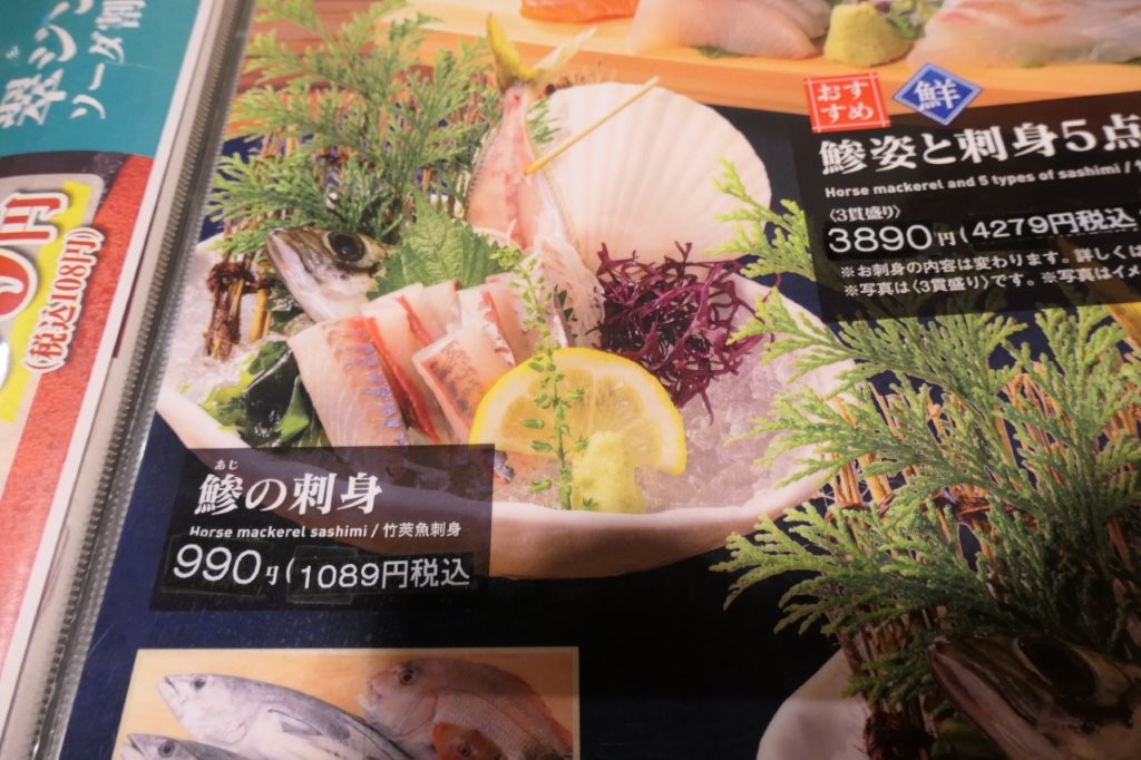 入り口の活魚水槽で鯵が泳いでいたのでテンション上がります