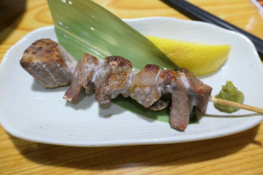 恐らく生本マグロを串焼きしたのを冷凍して解凍してさらに焼いた感じでしょうか???