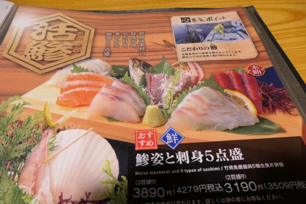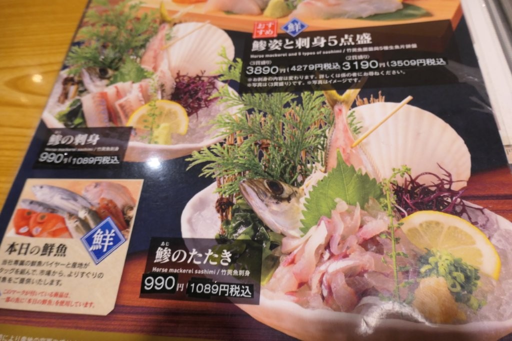 入り口の活魚水槽で鯵が泳いでいたのでテンション上がります