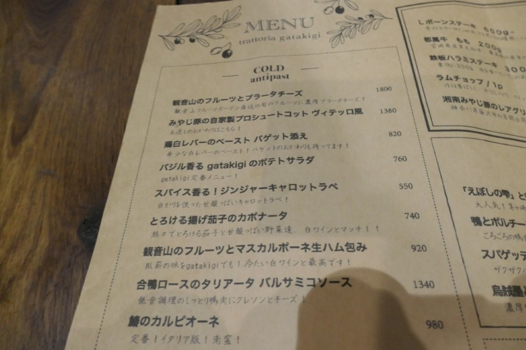 トラットリア ガタキージ 茅ヶ崎